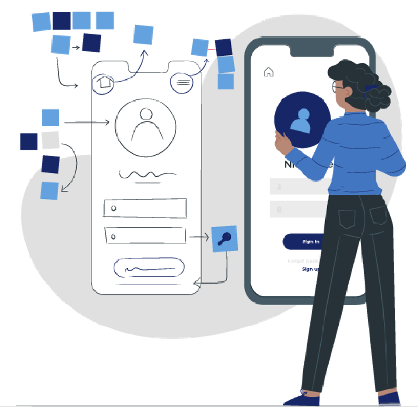 “make your imagination come to life.” UI/UX Design is most important phase of every project where your Imagination converts into Visualisation. First, we create wireframe which includes layouts of every element, where you get the basic idea about project, Then we develop the design of the app and website screen by screening and creating clickable prototype.